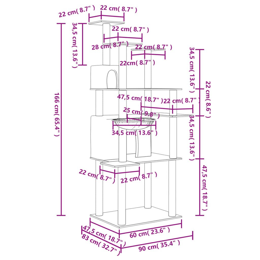 Arbre à chat avec griffoirs en sisal Gris clair 166 cm