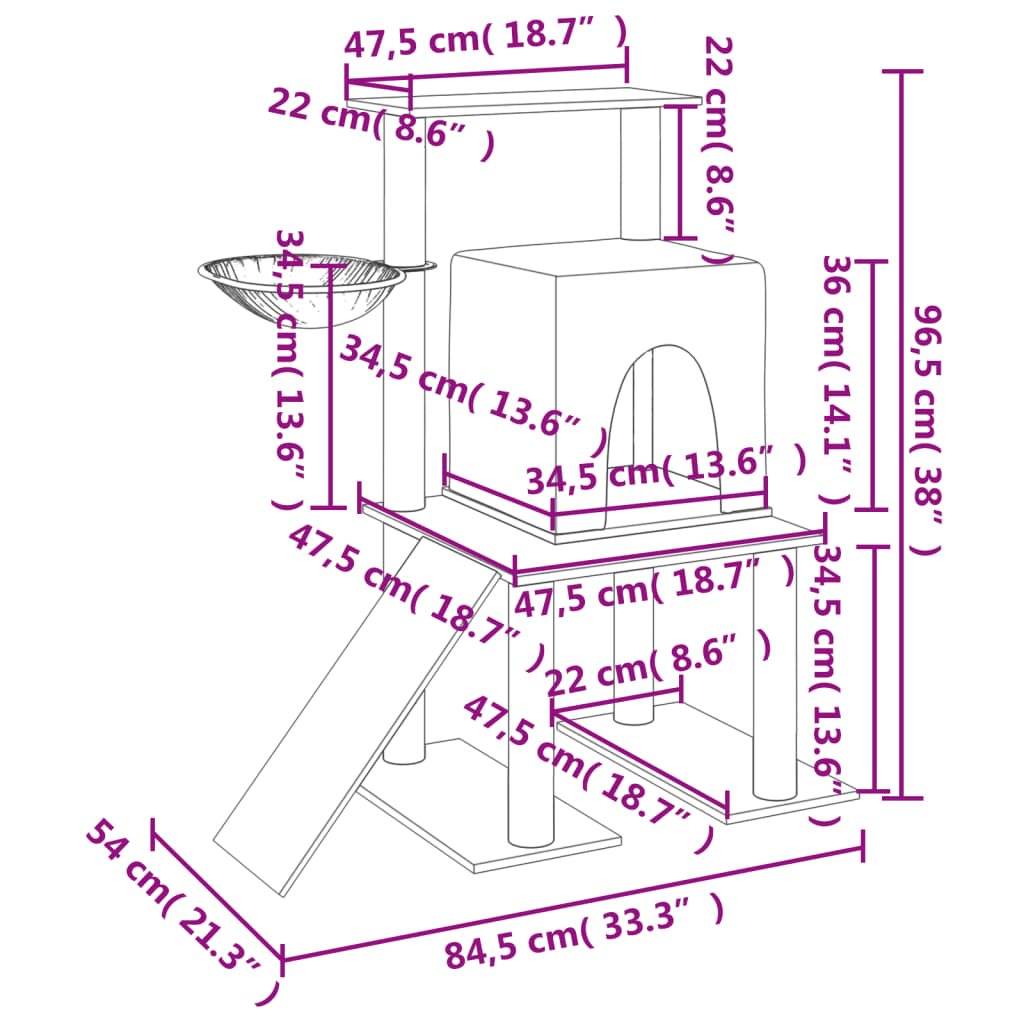 Arbre à chat avec griffoirs en sisal gris foncé 96,5 cm