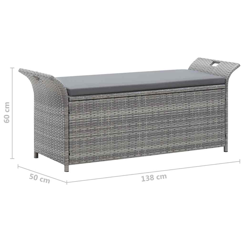 Banc de rangement avec coussin gris 138 cm résine tressée