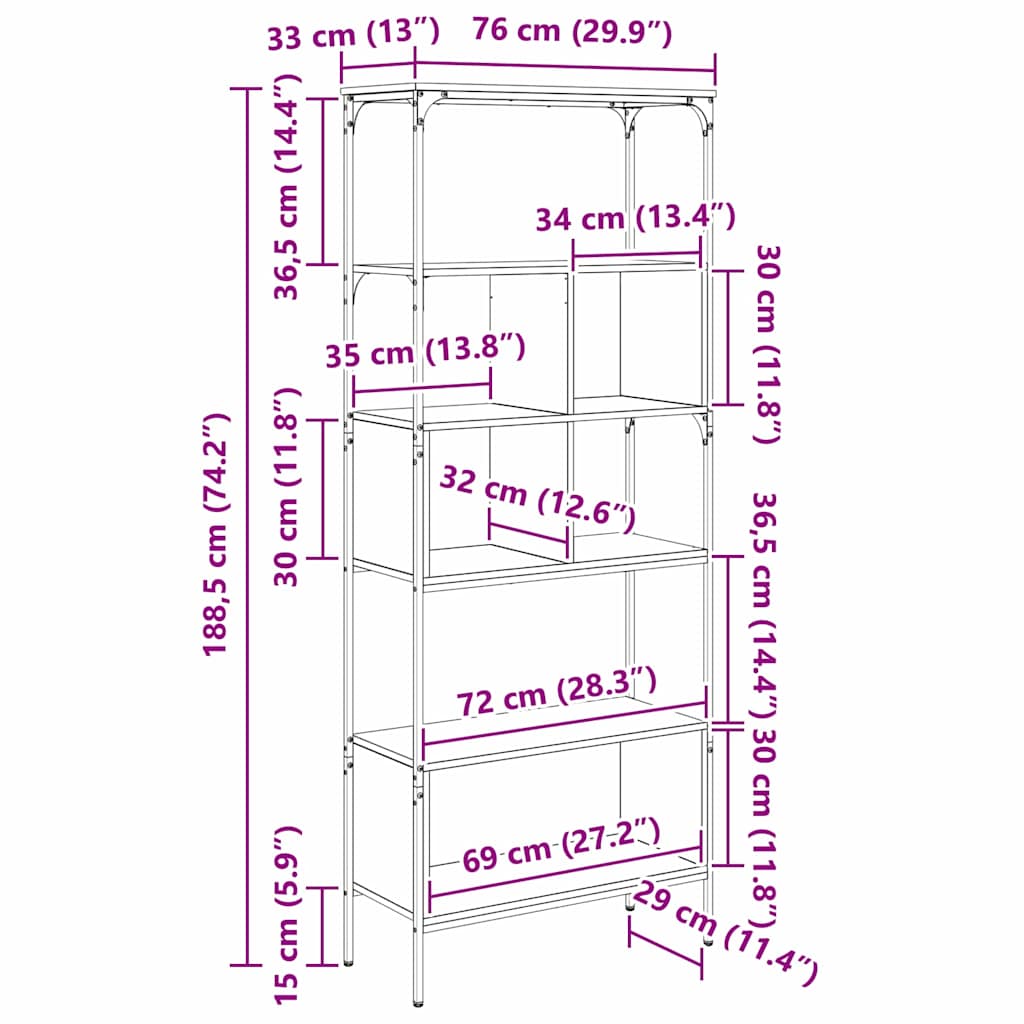 Bibliothèque Chêne noir 76 x 33 x 188,5 cm Bois d'ingénierie
