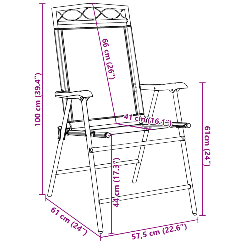 Chaises de jardin pliables lot de 8 en acier et textilène