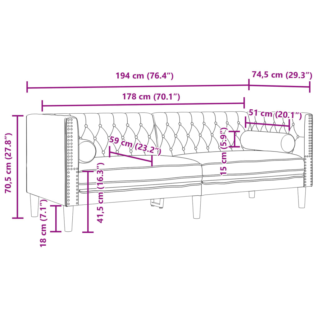 Ensemble de canapé Chesterfield et traversins 3 pcs velours