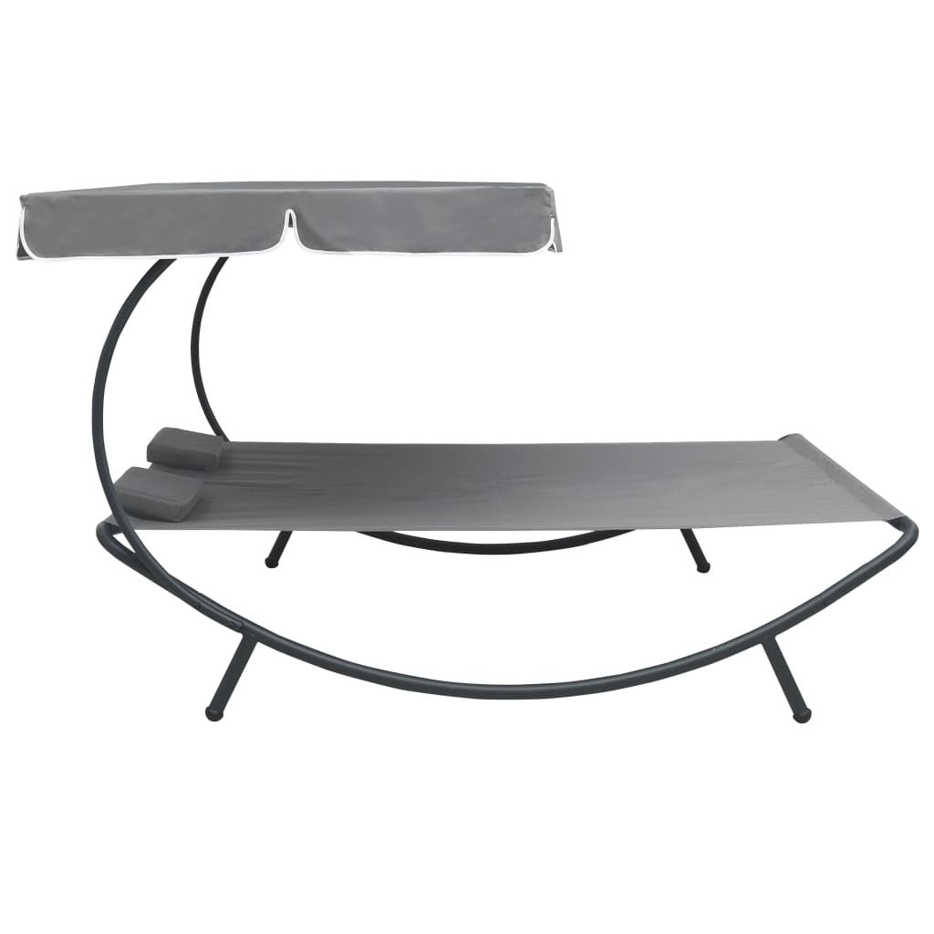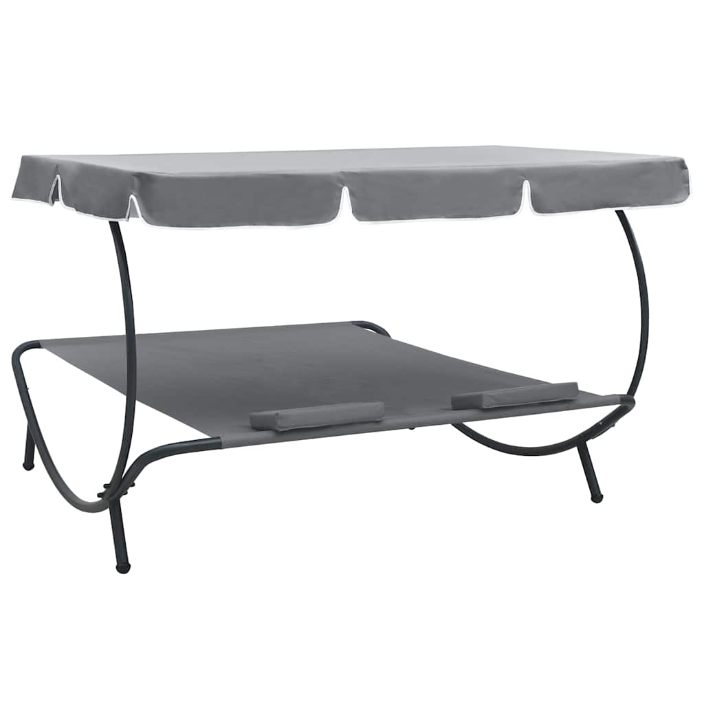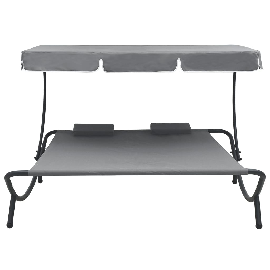 Lit de repos d'extérieur avec auvent et oreillers gris