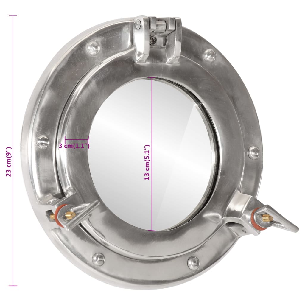 Miroir en forme de hublot mural Ø23 cm aluminium et verre