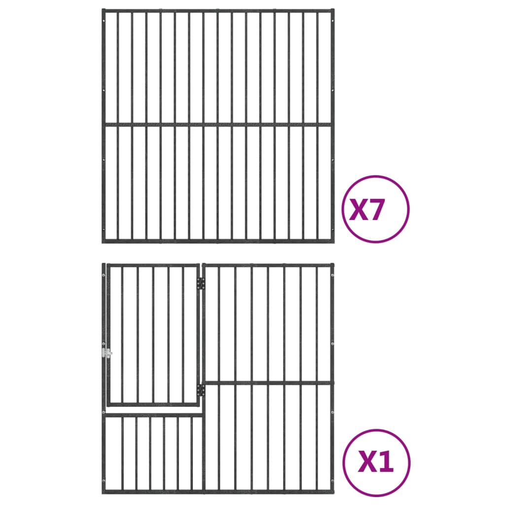 Parc pour chien 8 panneaux noir acier galvanisé