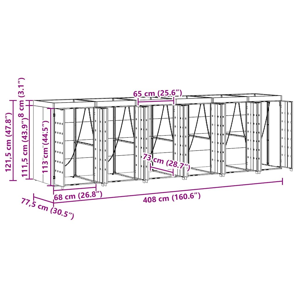 Rangement de poubelle à roulettes pour 3 poubelles Anthracite