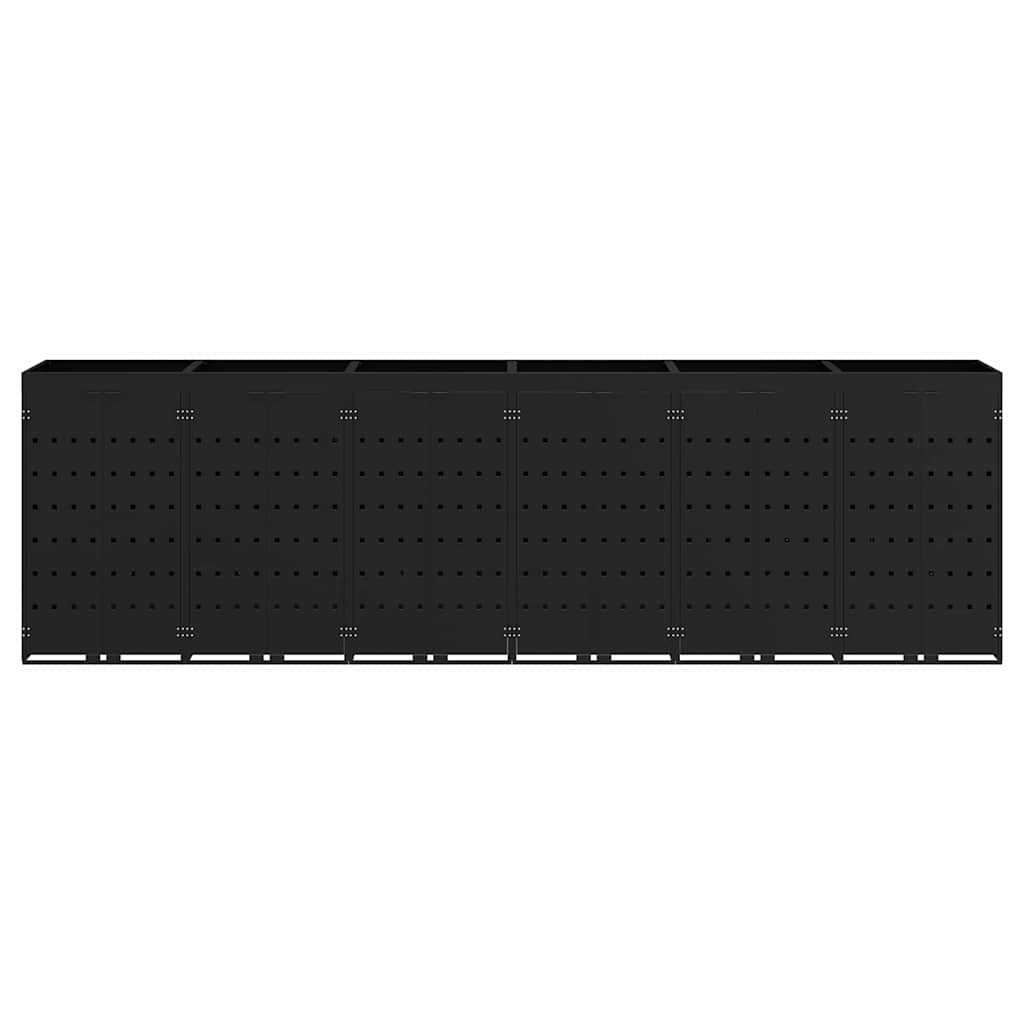 Rangement de poubelle à roulettes pour 6 poubelles Noir