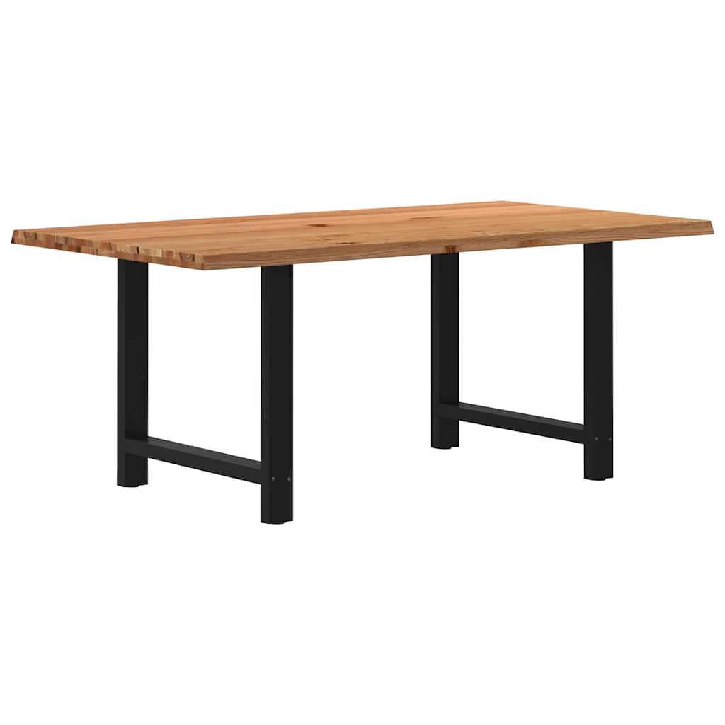 Faites de chaque repas un moment inoubliable en vous réunissant chaque jour avec votre famille ou vos amis autour de cette table à manger en bois ! Matériau robuste et durable : le bois de chêne massif est connu pour sa solidité, sa durabilité et la beauté de son grain, ce qui en fait un matériau idéal pour les meubles de longue durée. Sa résistance naturelle aux insectes et aux champignons permet aux meubles en chêne de rester attrayants et fonctionnels pendant des années.Grande table : cette table mesure 180 x 100 cm, ce qui permet de disposer d'un grand espace pour s'asseoir et d'en faire la pièce maîtresse de votre salle à manger.Charme unique : les nœuds, les fissures et les variations de couleur étant des caractéristiques naturelles du bois de chêne, chaque pièce de ce produit possède son charme distinctif. Reportez-vous aux images pour des exemples des variations auxquelles vous pouvez vous attendre.Conception pratique : ces pieds de table à manger comprennent des niveleurs de pied réglables, assurant la stabilité même sur les sols irréguliers et minimisant les rayures. En outre, le support comporte des trous pré-percés et des vis incluses dans la livraison, qui peuvent être utilisées pour fixer le pied au plateau de la table, ce qui facilite le montage.Structure robuste et stable : cette table de salle à manger est dotée de pieds en forme de H en acier peint par poudrage, ce qui lui confère une stabilité et une sécurité exceptionnelles. Bon à savoir :Chaque article est unique, avec des variations de couleurs et de grains. La livraison est aléatoire, ce qui garantit l'exclusivité et l'individualité de votre produit.Les nœuds et les petits défauts sont comblés avec un matériau de remplissage noir pour donner une surface de table agréable et lisse. Reportez-vous aux images pour des exemples.Le plateau de la table présente une épaisseur de 4 cm le long des bords pour une apparence robuste et une épaisseur de 2 cm au centre pour réduire la consommation de bois et le poids total.Veuillez percer des trous dans la partie centrale, pas le long des bords de la planche.Veillez à ne pas dépasser la profondeur de perçage maximale de 15 mm pour éviter d'endommager le plateau de table, car l'épaisseur du panneau est de 20 mm.Nous recommandons d'utiliser un tournevis plutôt qu'une perceuse électrique pour éviter que le bois ne se fissure lors de la fixation des pieds.