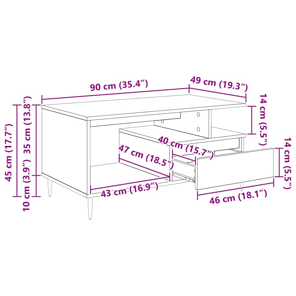 Table Basse 90 X 49 X 45 Cm Bois D'ingénierie chêne artisanal