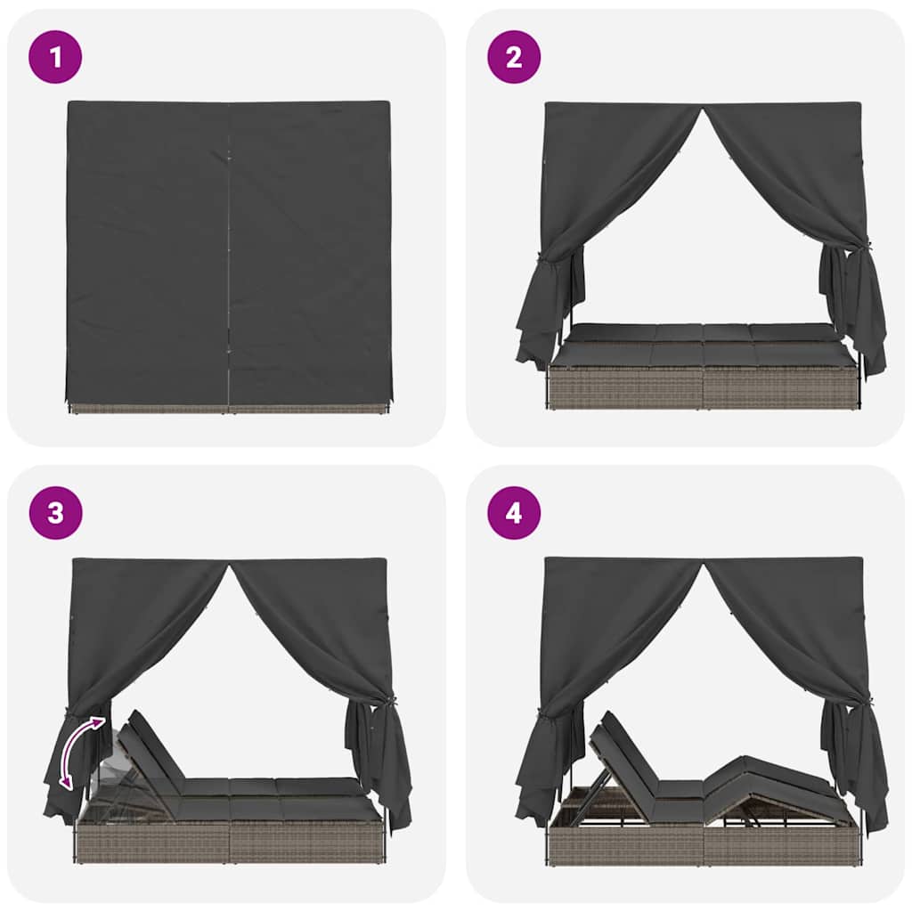 Transat double avec toit Gris 205 x 129 x 200 cm Rattan PE